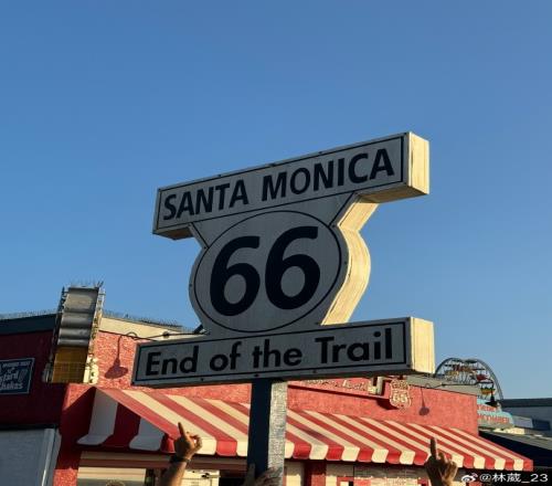 畅游美国加州林葳晒打卡66号公路路标照:游客