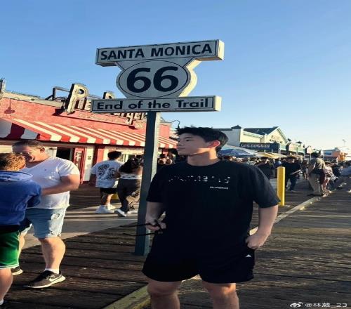 林葳晒出多张自己在美国加州洛杉矶旅游打卡的照片,配文:“游客。”