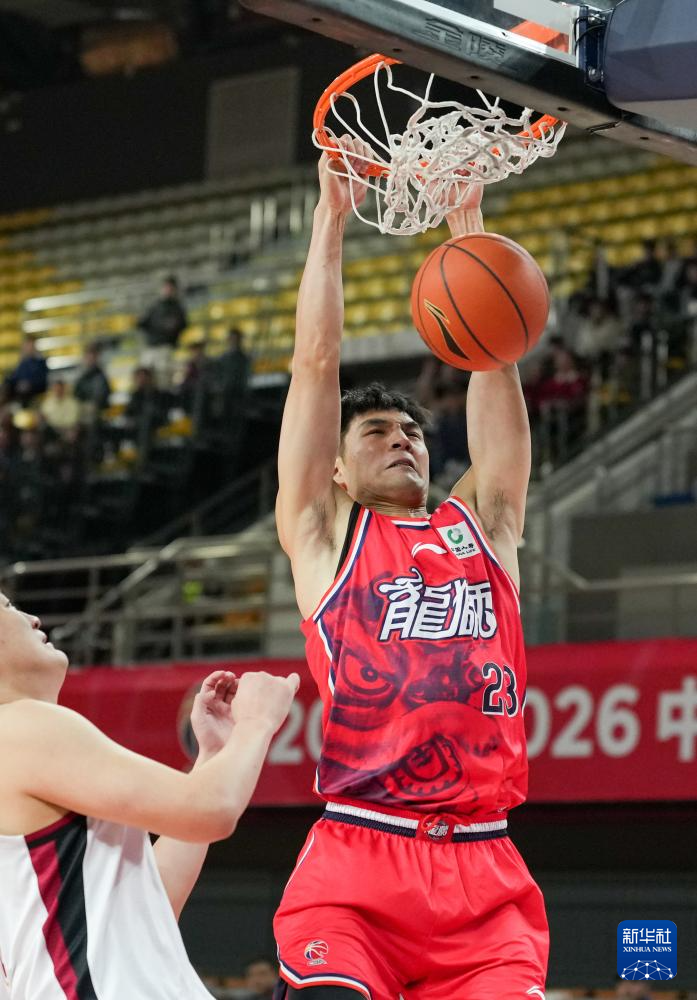 1月8日,广州朗肽海本队球员陈国豪(右)在比赛中扣篮。