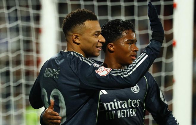第40分钟,莫雷诺手球送点。姆巴佩主罚,他骗过门将,轻松把球罚进。皇马取得领先。随后,姆巴佩在底线附近送出传中球,结果,马努-法兰多把球踢进自家球门。这粒乌龙球让塔拉韦拉陷入了绝境。半场结束,皇马2-0领先塔拉韦拉。