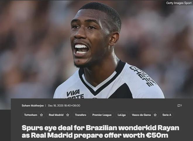 巴媒O Dia消息,热刺对瓦斯科达伽马俱乐部的拉扬十分感兴趣,但他们在这笔交易中还面临皇马的激烈竞争,银河战舰正考虑报价5000万欧元求购这名19岁的未来之星。