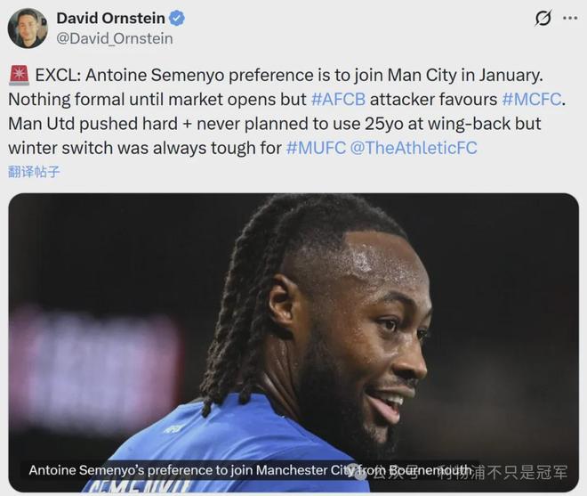 今天凌晨,名记大卫-奥恩斯坦、罗马诺都透露,塞梅尼奥已经心属曼城。