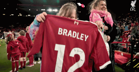那一天,当Reagan在安菲尔德与6万球迷一起高唱队歌的时候,当她从布拉德利手中接过利物浦球衣的时候,当她见到斯洛特、萨拉赫、范迪克等利物浦球员的时候,她的内心充满了爱、温暖、善良、感动,还有一份忠诚。