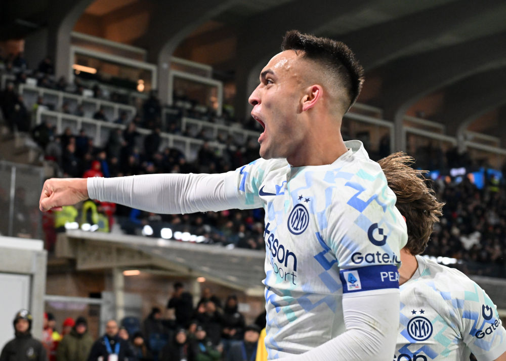 12月28日,国际米兰队球员劳塔罗庆祝进球。足球日报发(阿尔贝托·林格利亚 摄)