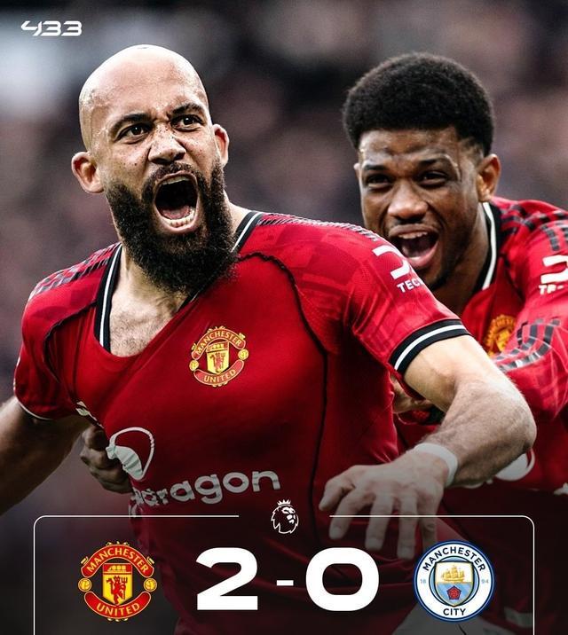 曼联积35分位列英超第4,遭遇4轮不胜的曼城积43分排在联赛第2,落后阿森纳7分。
