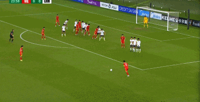 很快就起到效果,拜合拉木推进到禁区侧边被放倒,中国队获得任意球,王钰栋主罚,彭啸门前把球挡进球门,遗憾的是,越位在先,被判无效。同时,越南后卫范理德肘击拜合拉木染红,U23国足多打一人!