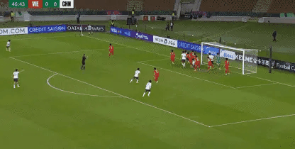 整个上半场,中国队场面占优,进攻和防守尤其是防对方的角球做得都不错,控球率、传球数、射门次数等数据上均领先于越南队,但未能攻破越南队球门。