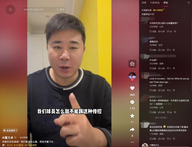 因此,在U23国足大胜越南首次晋级亚洲杯决赛之后,有大批网友攻陷了董方卓的社交媒体。