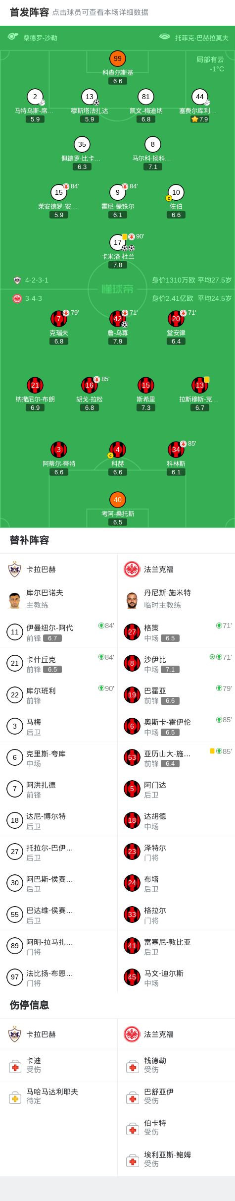 法兰克福2-3遭卡拉巴赫读秒绝杀被提前淘汰,卡米洛-杜兰梅开二度