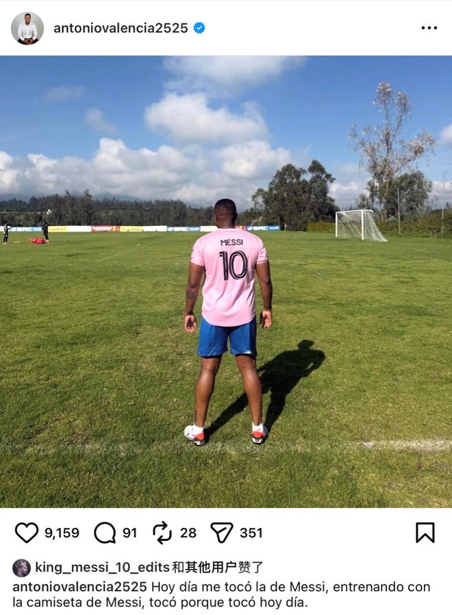 曼联名宿瓦伦西亚的配文听起来有点语无伦次,也不知道他是跟亲朋好友、七大姑八大姨打赌,赢得穿梅西球衣的权利,还是他时不时会穿其他球衣,而今天轮到穿梅西球衣,或者其他时候穿梅西球衣是出街,而今天是训练。不得而知,但他对于穿梅西球衣这件事的兴奋溢于言表,这是很明显的。
