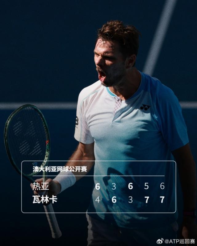 1月22日讯 2026澳网男单第二轮,40岁的瓦林卡,鏖战四个半小时,打满五盘抢十险胜热亚。本场比赛中,持外卡出战的2014年赛会冠军瓦林卡战至决胜盘抢十,以4-6、6-3、3-6、7-5、7-6(10-3)击败法国资格赛球员热亚,成功挺进32强!