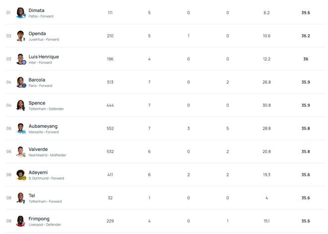 39.6km/h,帕福斯前锋迪马塔断层领先欧冠冲刺速度排行榜