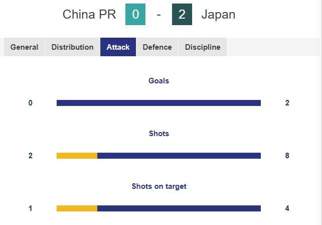 U23国足vs日本半场数据:国足控球率45.9%,射门2-8,射正1-4
