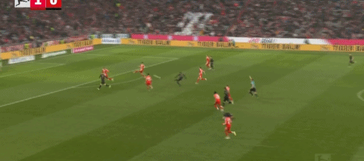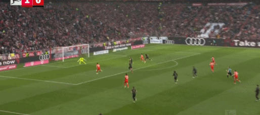 第81分钟,流畅配合,吉安努利斯倒三角,马森戈破门,奥格斯堡2-1拜仁
