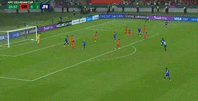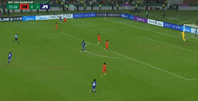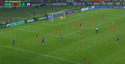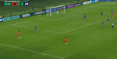 第76分钟,小仓幸成远射,皮球发生折线后入网,U23国足0-4日本。