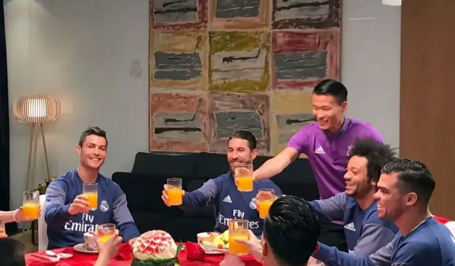 在效力皇马期间,林良铭组织一次皇马内部聚餐,C罗、马塞洛、水爷以及佩佩等巨星全部到场,在敬饮料环节,林良铭是站着的,小伙子的为人处世,也获得一众好评。